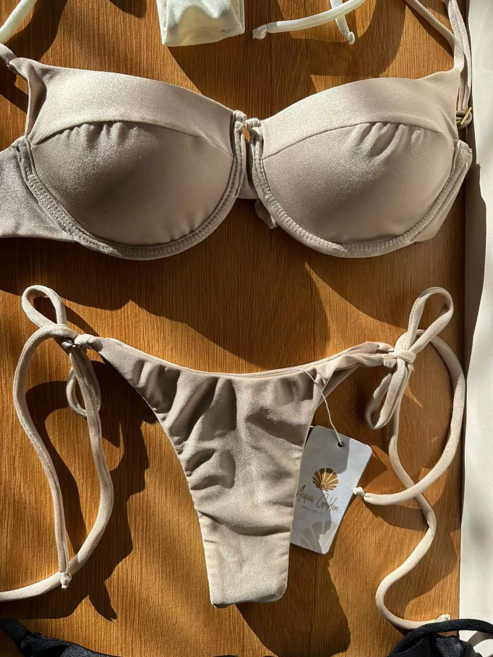 O Biquíni Maju é feito em trilobal beach, um material de alta qualidade premium que oferece conforto e resistência. Com um brilho sutil, ele se ajusta perfeitamente ao corpo, garantindo um caimento ideal.